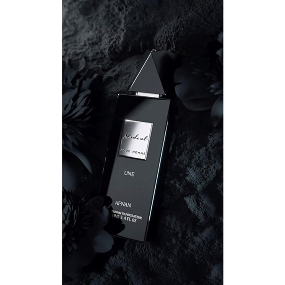 Modest Pour Homme Une by Afnan is a Aromatic Spicy fragrance for men. Modest Pour Homme Une was launched in 2019. The relaxed and airy, citrus-like fragrance combines with lavender tones and cool mint, also exquisitely sourced eucalyptus complements this. Rare Woods and nutmeg with pepper. Somewhere in the distance, there is a hint of earthiness and dry smoke, which gives us vetiver that plays its tones along with the softly sweet cedarwood and the gentle touch of a softly inviting musk. Smells Very Famous.