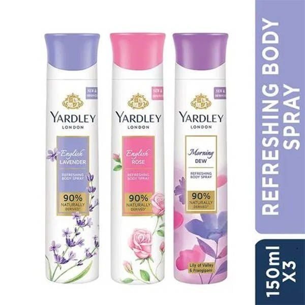 Yardley London Assorted Deodorant Pack for Women, English Lavender, English Rose, and Morning Dew, (150ml)