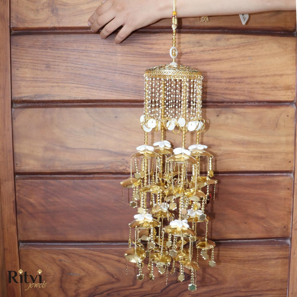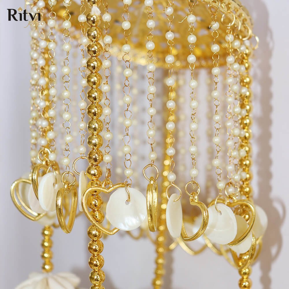 These traditional hanging ornaments also called Kaleera are worn by brides in India and are usually crafted as umbrella-shaped structures with intricate details, including beads, tassels, pearls, shells, butterflies, hearts and sometimes even ghungroos (small bells). The intricate designs, materials, and rituals of Kalira reflect the region’s cultural heritage.Â