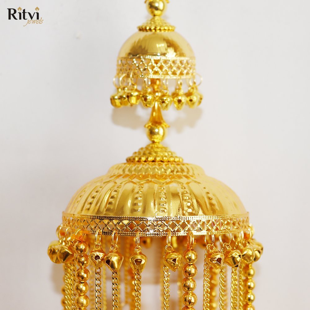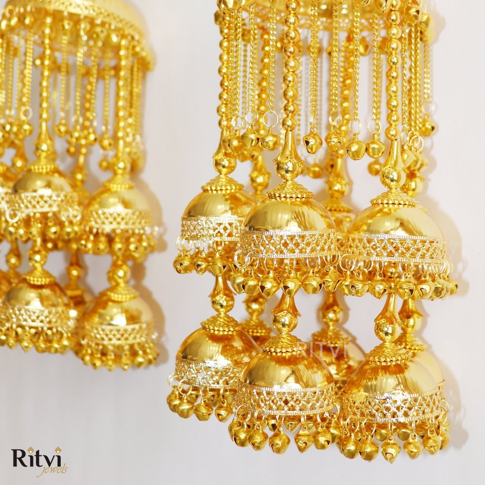 These traditional hanging ornaments, also called Kaleera are worn by brides in India and are usually crafted as umbrella-shaped structures with intricate details, including beads, tassels, pearls, shells, butterflies, hearts and sometimes even ghungroos (small bells). The intricate designs, materials, and rituals associated with Kalira reflect the cultural heritage of the region.