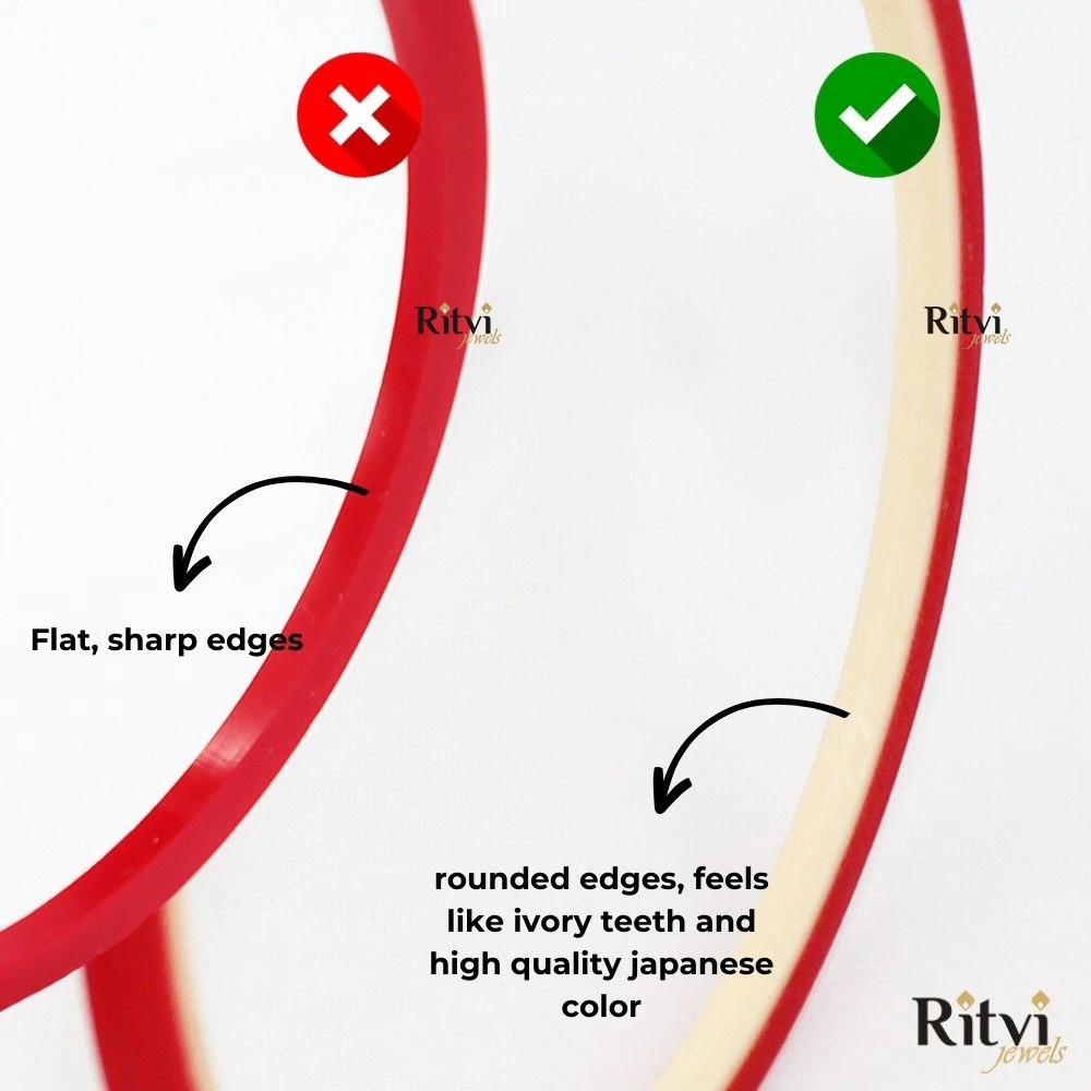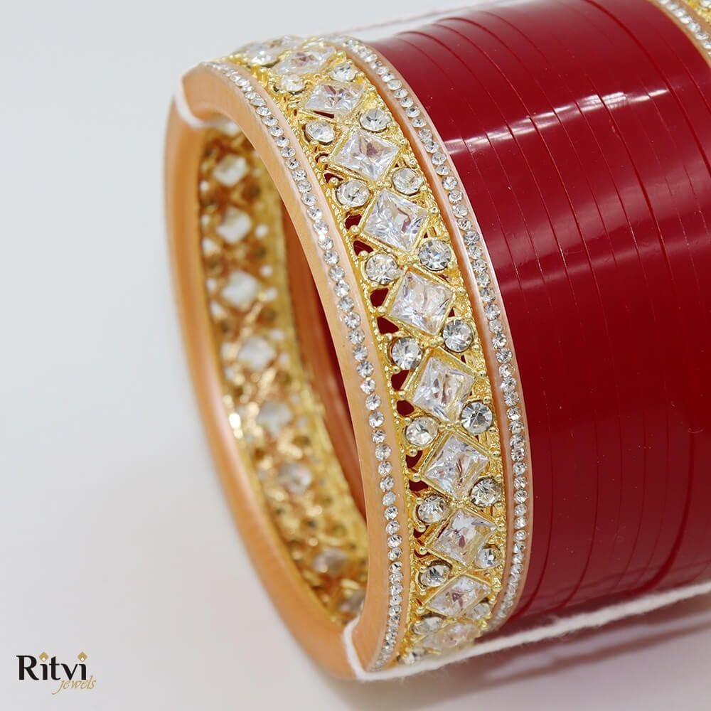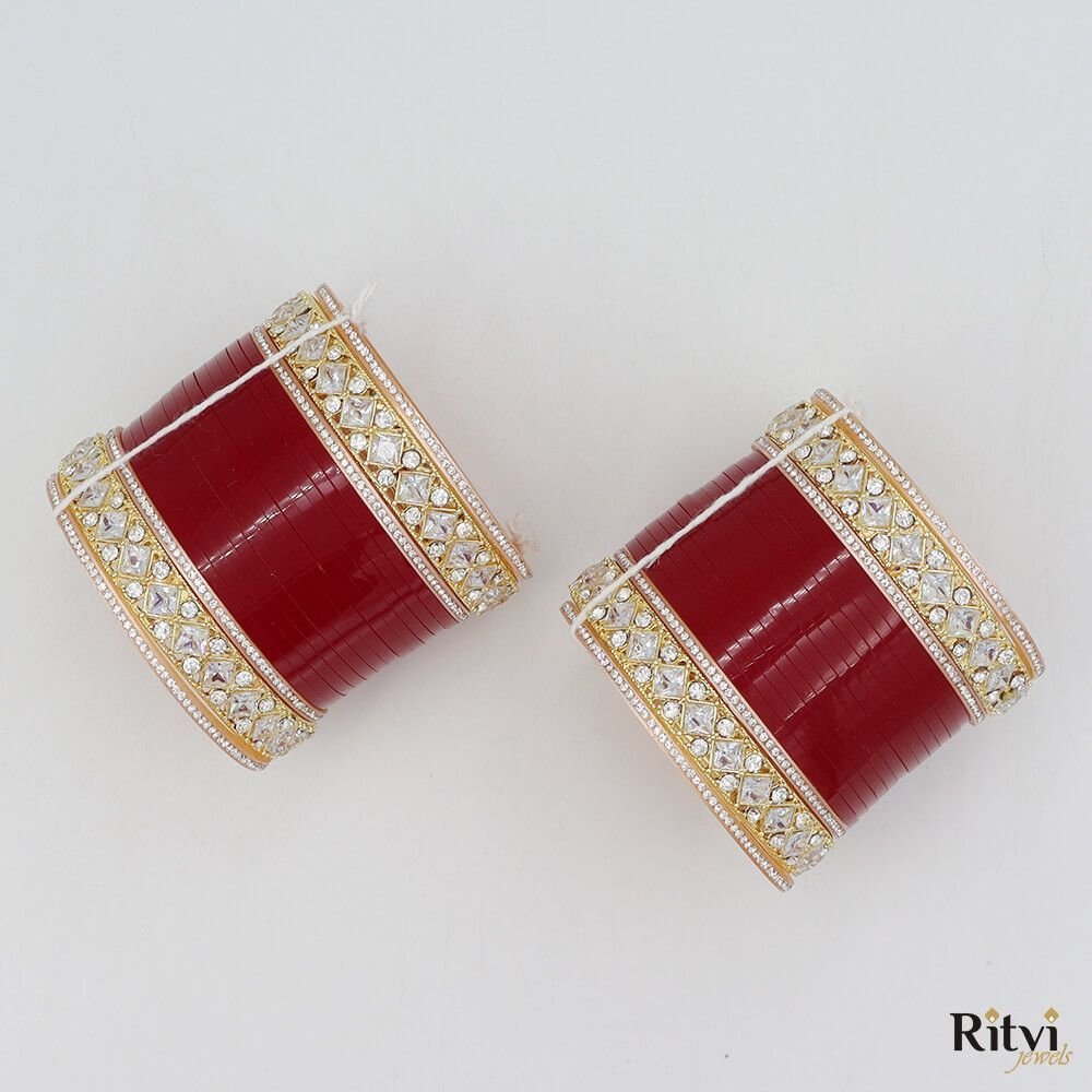 Beautify your hands with our Bridal Chura, designed with the most care and perfection to radiate royalty, elegance and tradition altogether. Each of our bangle is manually rounded and shaped from inside to provide utmost comfort to give you a rich velvety feel. Ritvi Jewels serves to always provide quality products.