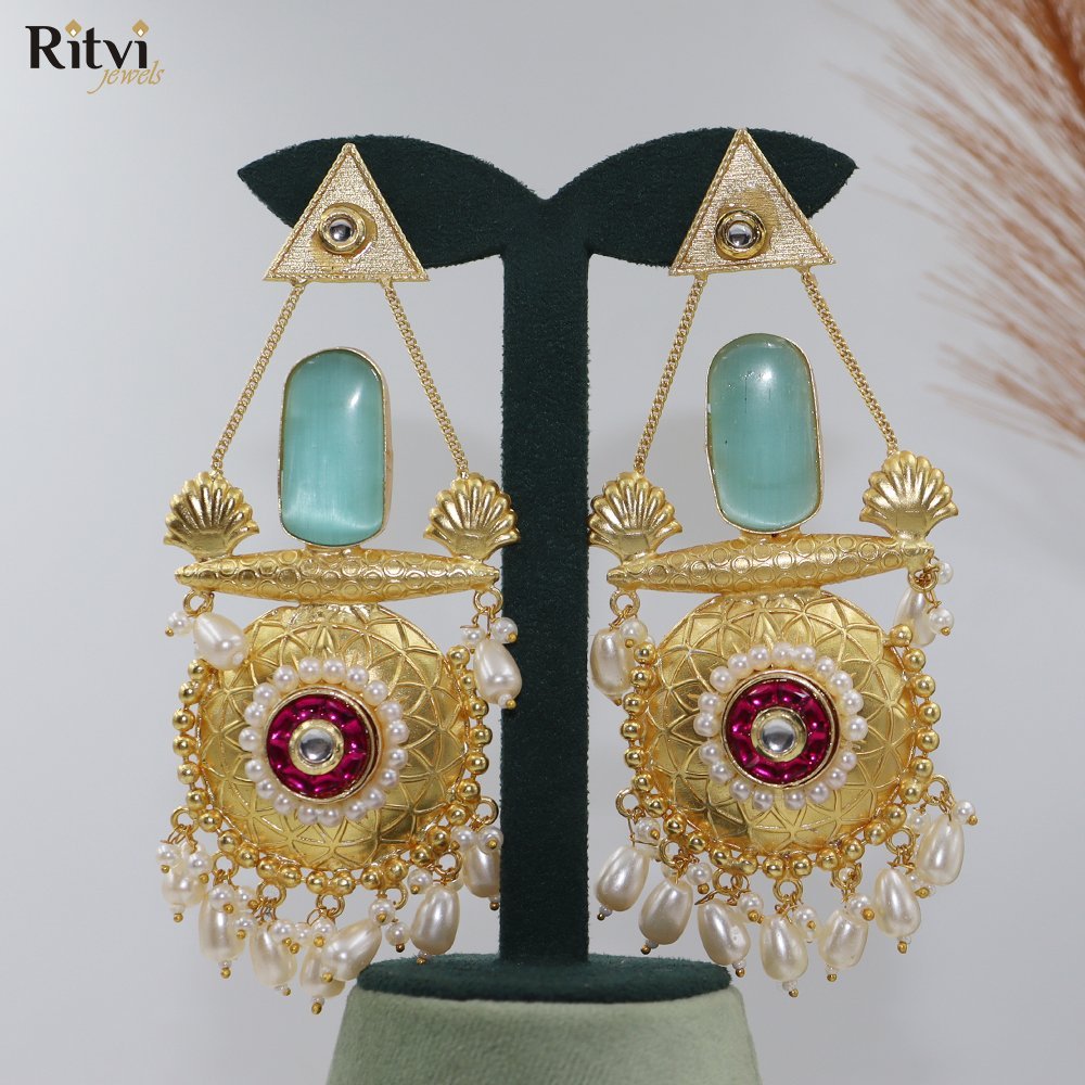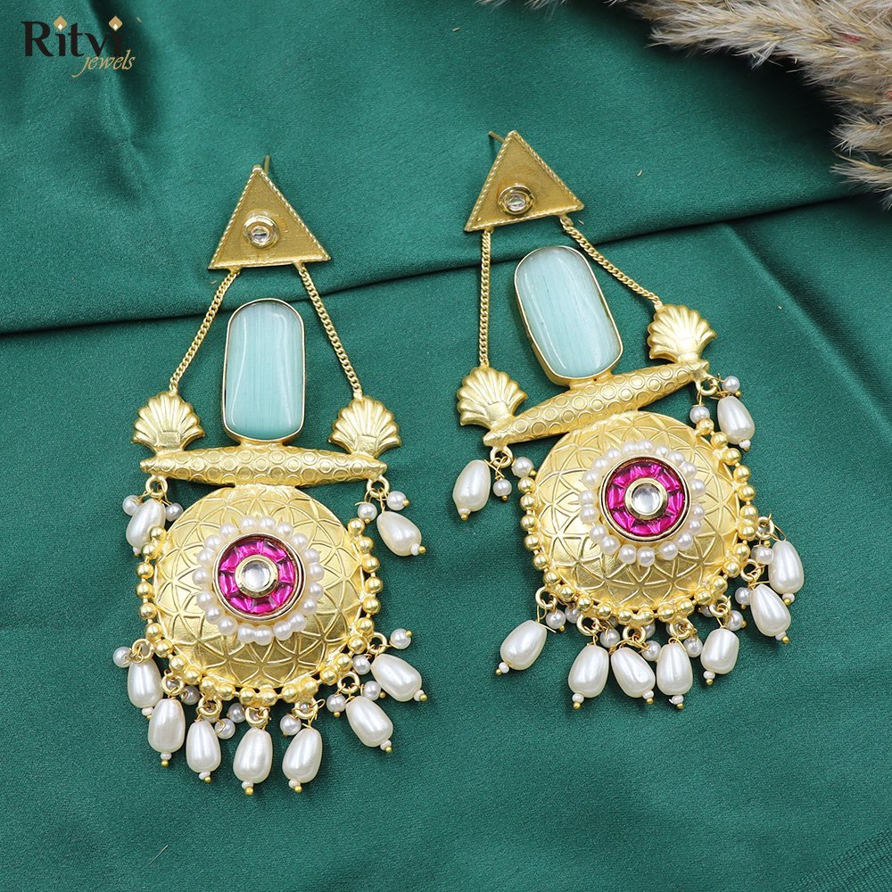 Elevate your style with our oversized handcrafted long earrings, designed to make a bold statement. Made from high-quality brass and plated with gold and silver with an anti-tarnish finish, these earrings ensure durability while maintaining their radiant charm. Inspired by Jaipur’s rich heritage and boho-tribal aesthetics, they feature intricate detailing, exuding a free-spirited yet regal vibe. Perfect for those who love distinctive, artisanal jewelry, these earrings add a touch of ethnic elegance to any outfit—whether it’s a casual day out or a festive occasion.