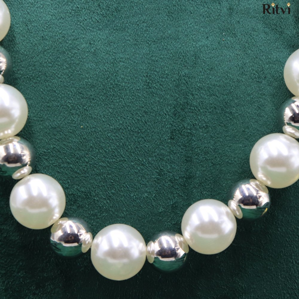 A timeless blend of lustrous pearls and sleek silver-toned beads, this necklace adds a touch of classic elegance. Ideal for formal gatherings or everyday grace with a sophisticated twist.