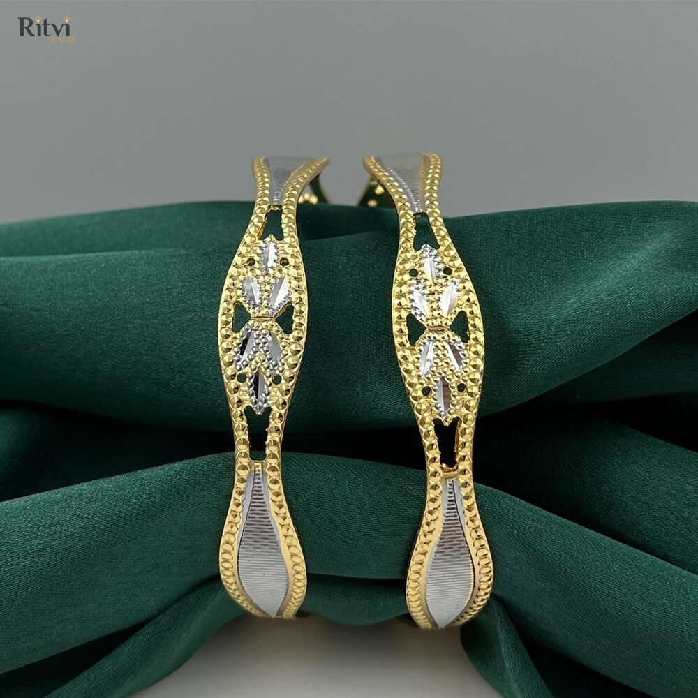 It is a beautiful and timeless piece of jewelry that adds elegance and sophistication to any outfit. Its luxurious appearance and enduring value make it a popular choice for personal adornment or as a cherished gift. The Ritvi Gold Bangle is made in high quality imitation Gold. It is smooth, lustrous, lightweight and perfect for daily wear. It has intricate designs and motifs.
