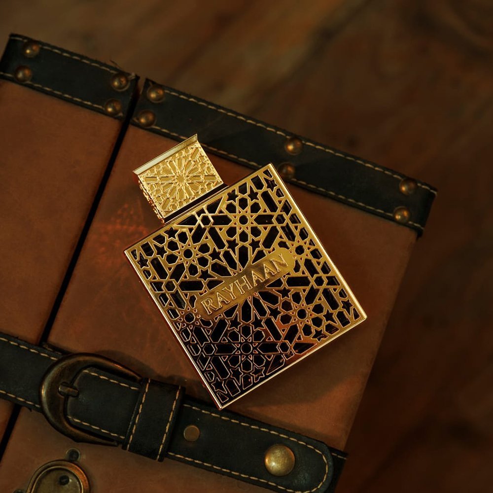 Presenting RAYHAAN ELIXIR….the latest AROMATIC AMBERY WOODY creation by Rayhaan Perfumes! This powerful scent ignites your feelings adding a sensual touch at its base. Starting with a zesty citrusy note fueled by minty freshness, the fragrance quickly unveils its richness of lavender and benzoin complimented with accents of sweet vanilla. Trumped with warm notes of tonka beans in between addictive notes of honey and tobacco, the culmination is as rich as the beginning. The gold is symbolic of divinity and power; a perfect look to the perfect scent!