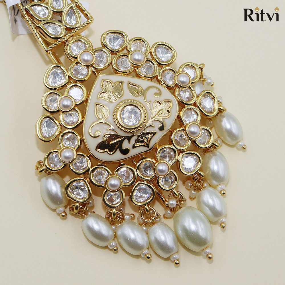 Ritvi Charlie Gold Finished Pearl Kundan Kalgi