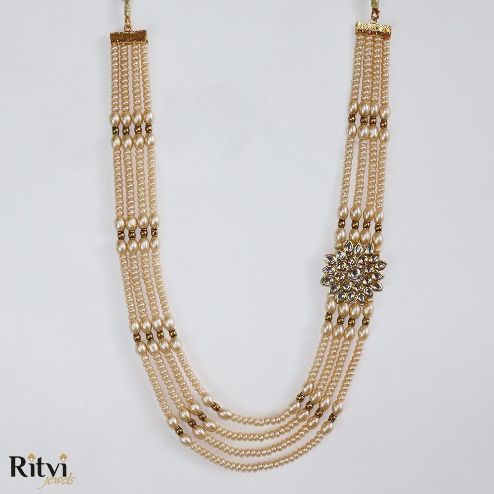 Ritvi Four Layer Rose Gold Pearl Kundan Sherwani Mala