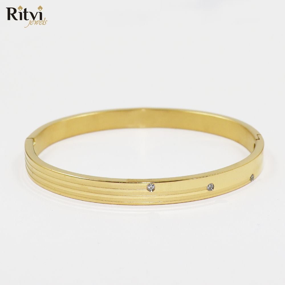 Our Rocky Band Bracelet For Women is a popular accessory for special occasions and cultural events among women. It is typically a solid, circular band with intricate designs or engravings plated in Gold for the rich royal feeling. The bracelet has a comfortable fit and is easy to wear, with a sturdy clasp to keep it secure on the wrist, with an openable lock.