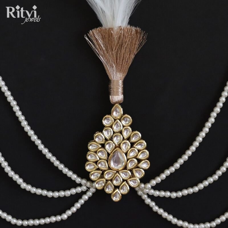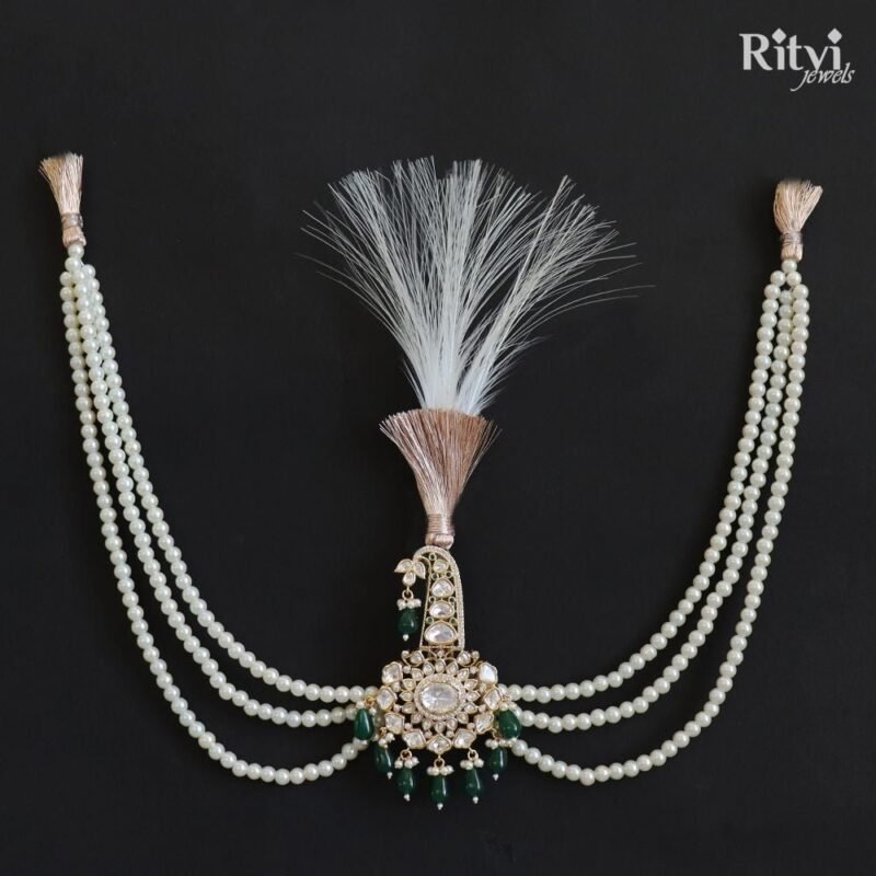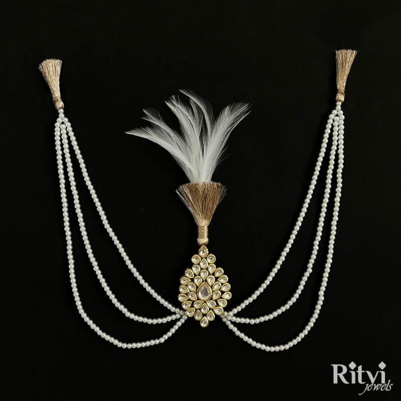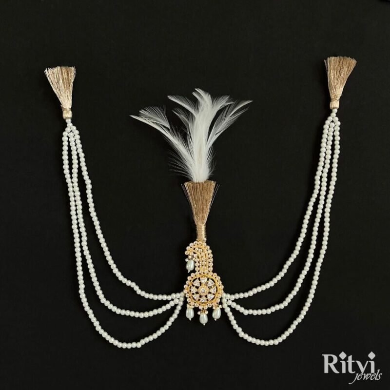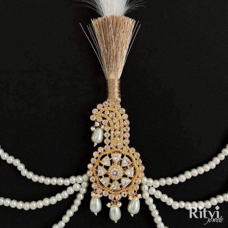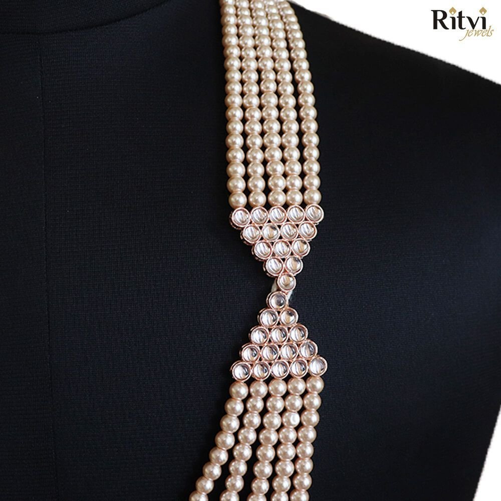 The choice of wedding jewellery should reflect the groom’s personal style, cultural traditions, and the overall theme of the wedding. It’s essential to choose pieces that make the groom feel comfortable and confident on his special day. Sherwani “Mala” or “Haar” comes in various lengths and designs, ranging from delicate and intricate to bold and opulent. Our Ritvi Groom pearl Mala adds a royal and regal touch to the groom’s appearance. Pair this gorgeous pearl mala with any of your traditional attire for a complete look. The Mala will surely take your wedding or festive look a notch higher when paired with any kurta, sherwani or indo-western.