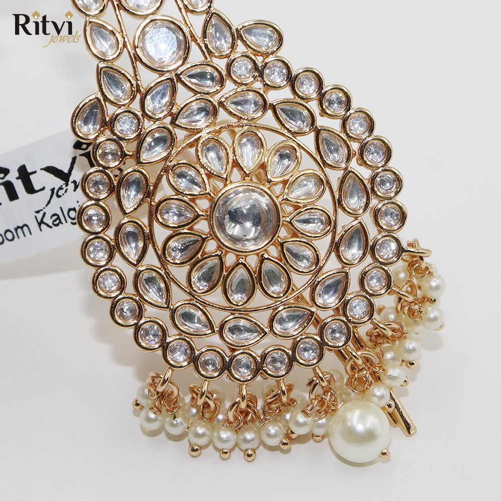 Ritvi Samarth Gold Finished Pearl Kundan Kalgi