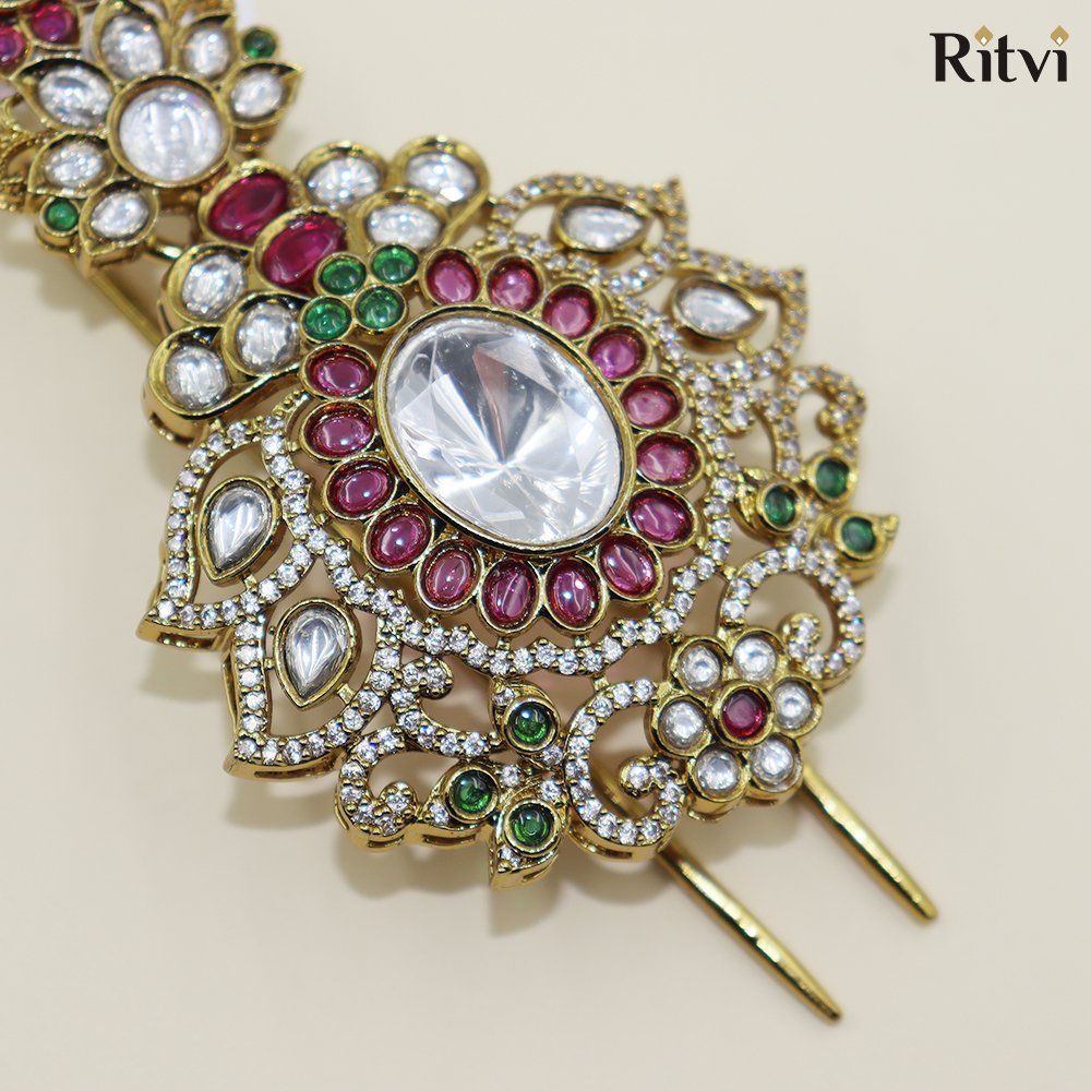 Ritvi Shubh Gold Finished Pearl Kundan Kalgi