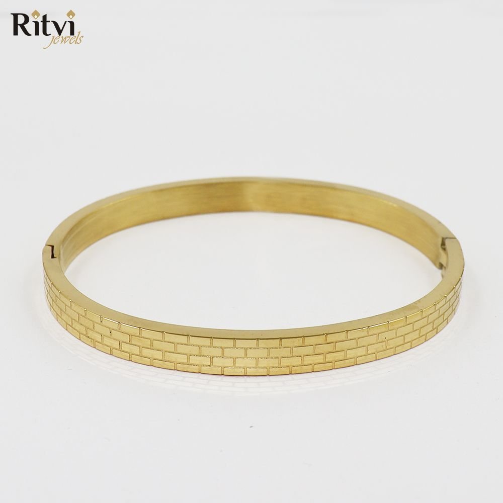 Our Wall Band Bracelet For Women is a popular accessory for special occasions and cultural events among women. It is typically a solid, circular band with intricate designs or engravings plated in Gold for the rich royal feeling. The bracelet has a comfortable fit and is easy to wear, with a sturdy clasp to keep it secure on the wrist, with an openable lock.