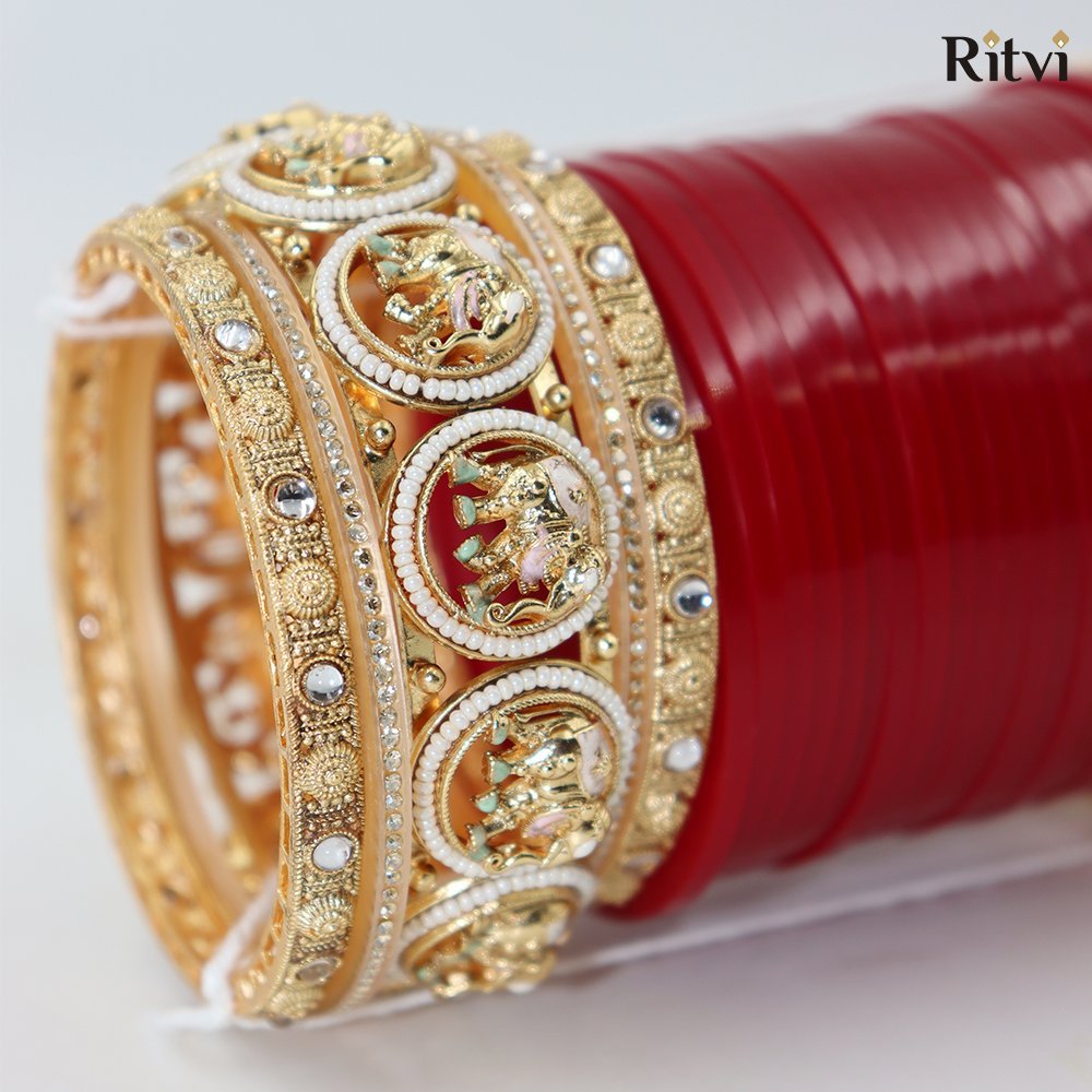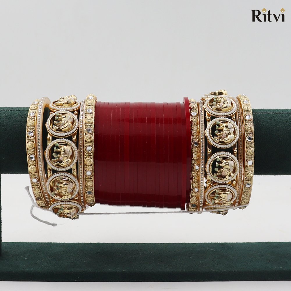 The chura includes high quality gold plated elephant motif bangles as the center of attraction of the chura. It symbolizes good fortune, happiness, and a prosperous married life. The design reflects simple and elegant to highly ornate, reflecting cultural richness and personal style.