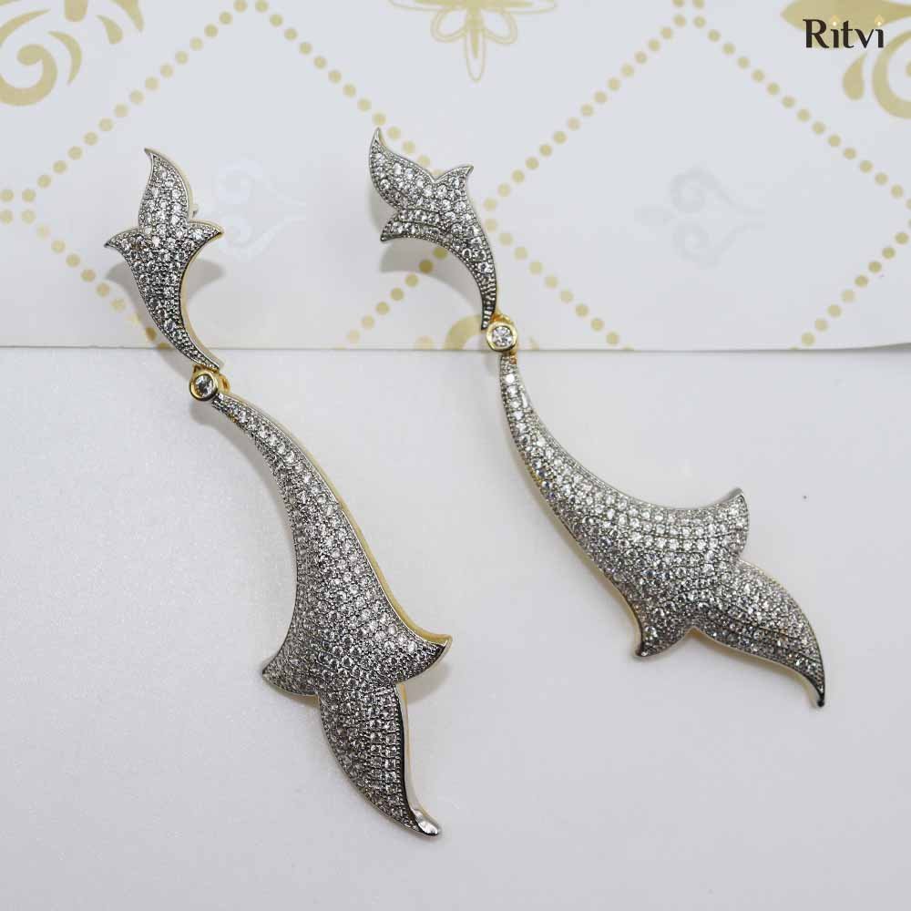 Make a bold statement with these exquisite gold-plated fish-shaped long earrings, designed to captivate with their intricate craftsmanship. Fully encrusted with shimmering zircon stones, they exude elegance and brilliance from every angle. The unique fish motif symbolizes prosperity and grace, making these earrings a perfect blend of tradition and modern allure. Ideal for festive occasions, weddings, or adding a distinctive touch to your look, these earrings are a true showstopper.